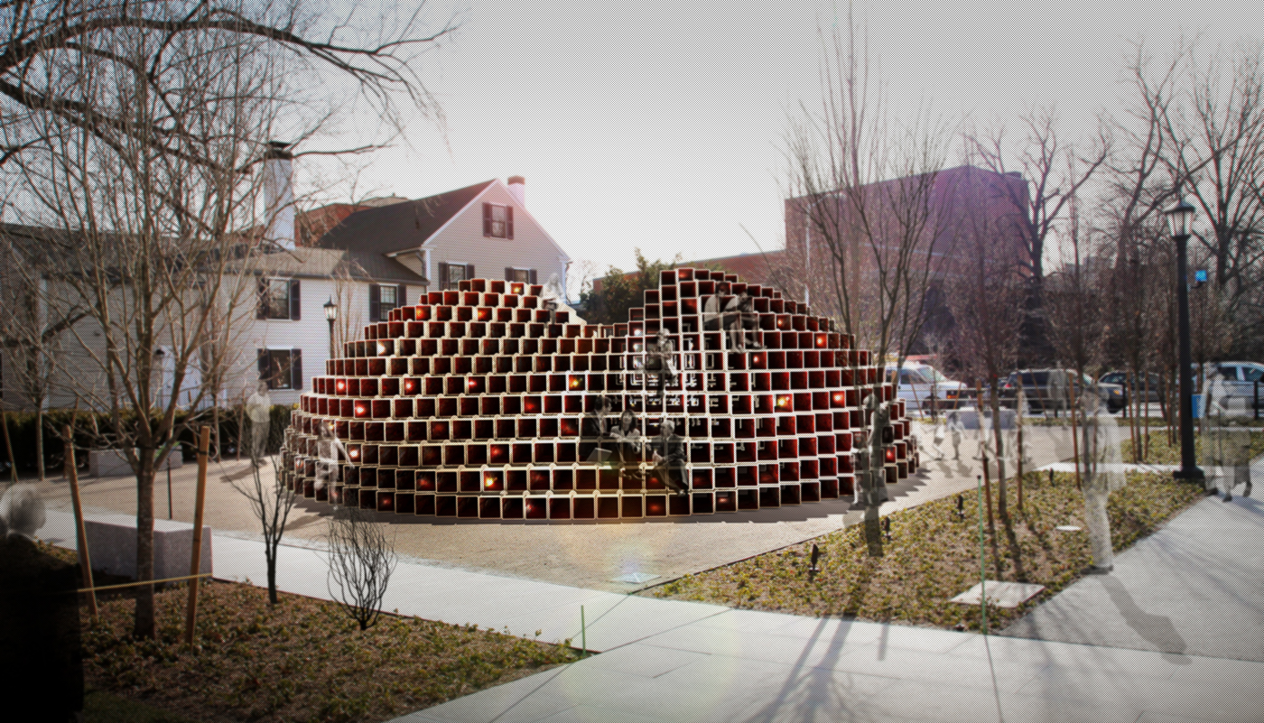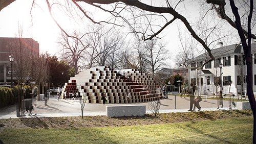 The fundamental approach for designing ‘STACKed’ began with acknowledging the integral relationship between the installation site and the overall Radcliff Institute site. Radcliff Yard is defined by a ring of buildings (solid) and the space between them (voids) that surrounds the perimeter of the yard. Although the existing empty installation lot acts as a void in this context, this relationship can either be maintained or converted depending on the nature of the installation. From this recognition, we have decided to transform the site into a solid (object) in order to further enhance the boundary condition of the Radcliff Yard.